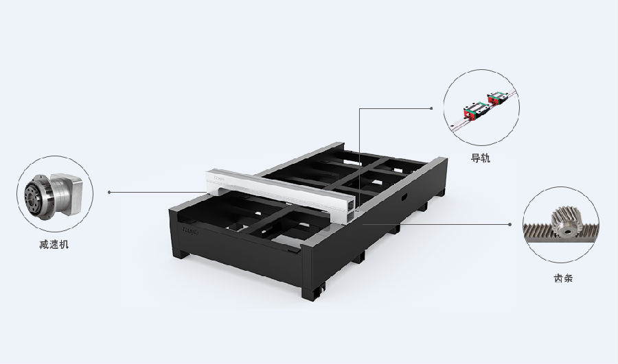 光纖激光切割機配備臺灣yyc齒條,日本新寶法蘭輸出減速機、臺灣上銀導(dǎo)軌。