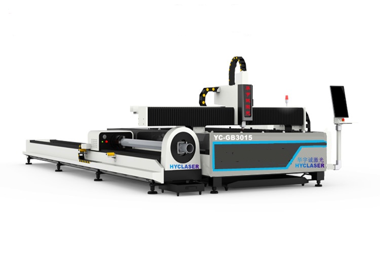 YC-GB3015-1500/2000/3000/4000/6000w激光切割機(jī)為管板一體機(jī),可以切割3000mm×1500mm(可選4000mm×1500mm、6000mm×1500mm、4000mm×2000mm、6000mm×2000mm、8000mm×2500mm可訂做)幅面的板材,具備輔助切管功能,可以切割圓管Ф25mm-Ф160mm,方管25mm×25mm-100mm×100mm(對角線30mm-160mm),厚度3-16mm,長度6-12m,切縫小,且熱效應(yīng)小,尤其適合金屬薄板(管)加工。